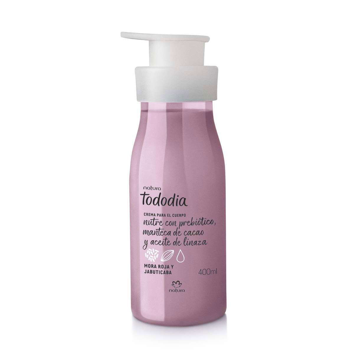 Crema corporal nutritiva con prebióticos, manteca de Cacao y Aceite de Linaza.
