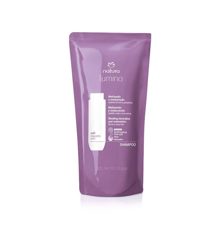Limpieza con matización progresiva. Efecto anti amarillamiento. Efecto anti-decoloración. Cabello más fuerte y resistente. Hecho en Brasil. Vegano